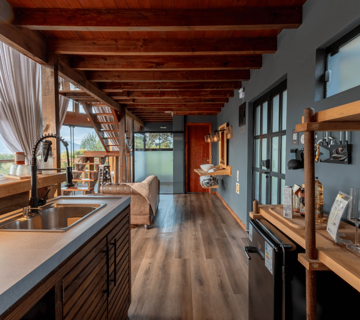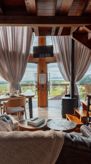 Nossa cabana inspirada no estilo a-frame oferece uma experiência única.