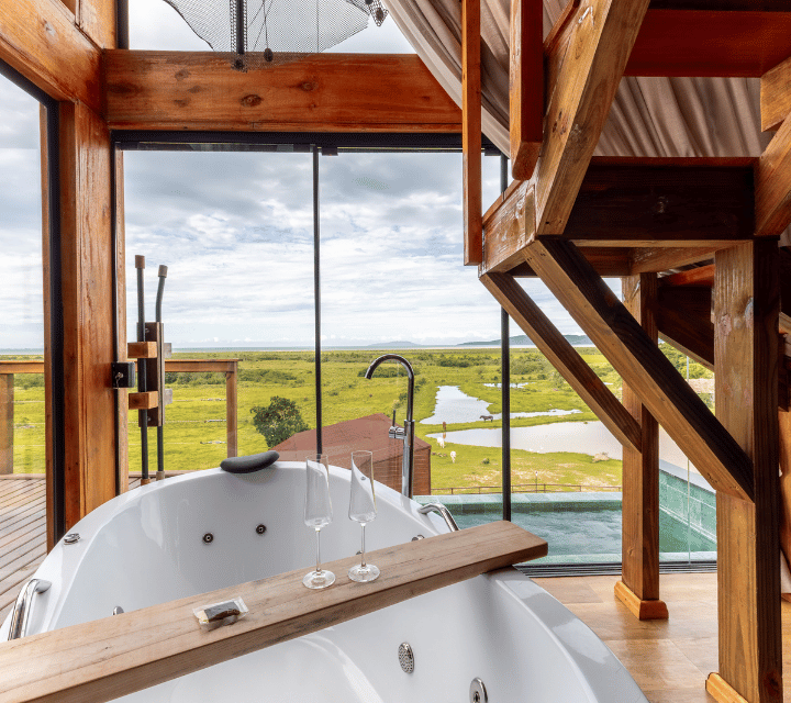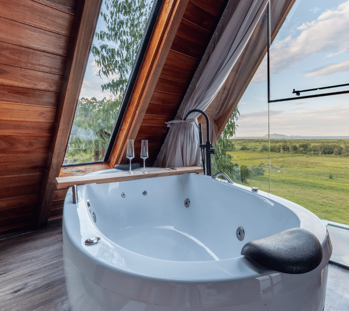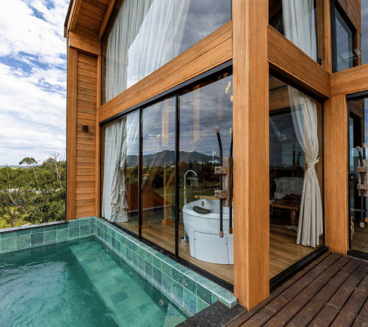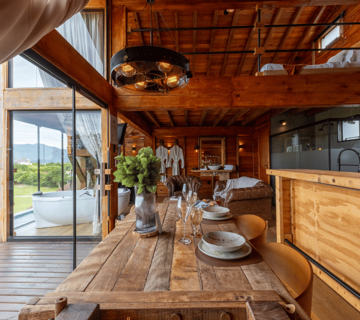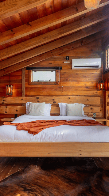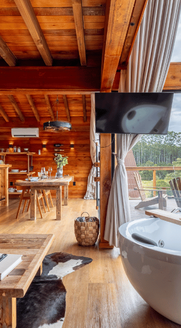 Descubra o refúgio ideal para relaxar e se reconectar com a natureza. Nossa cabana oferece uma experiência exclusiva com piscina privativa para o casal, banheira de hidromassagem para momentos de puro relaxamento e uma cama king size no mezanino para uma noite de sono reparador. Com uma cozinha totalmente equipada, TVs smart na sala e no quarto, e um chuveiro com duas duchas para um maior conforto, você encontrará tudo o que precisa para sua estadia ser inesquecível.
