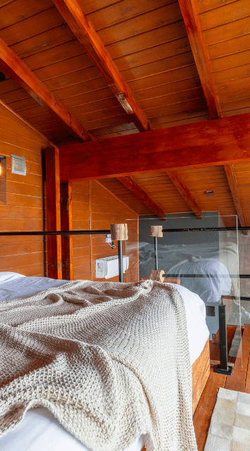 Relaxe na piscina individual aquecida na varanda, desfrute da banheira de hidromassagem, durma em uma cama king size no mezanino e desfrute de comodidades modernas, como cozinha completa, TV smart na sala e no quarto, além de uma revigorante ducha ao ar livre.