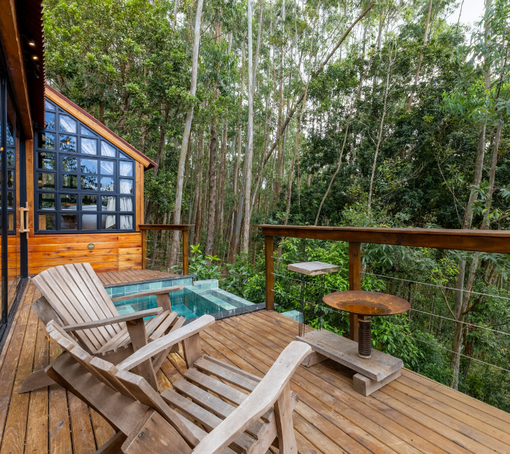 Nossa cabana oferece uma experiência única, com piscina privativa para o casal, banheira de hidromassagem para momentos de total tranquilidade e cama king size, garantindo um sono reparador.